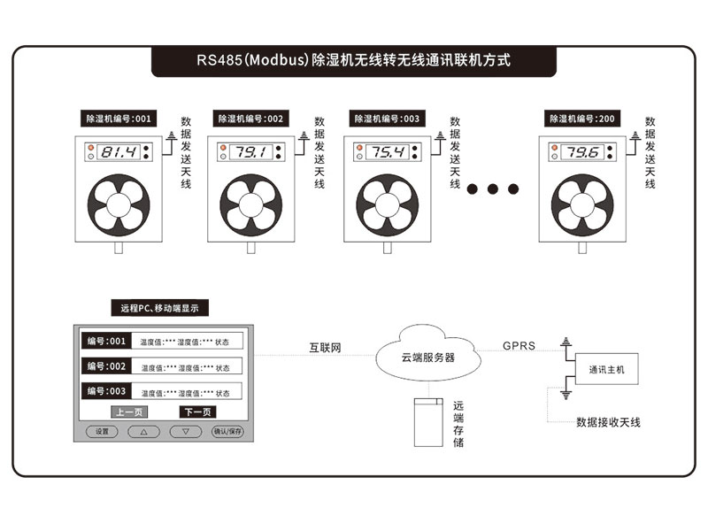 智能無(wú)線溫濕度集中監(jiān)控系統(tǒng)由智能無(wú)線溫濕度集中監(jiān)控主機(jī)、智能無(wú)線溫濕度集中監(jiān)控子機(jī)和監(jiān)控軟件構(gòu)成。每臺(tái)智能無(wú)線溫濕度集中監(jiān)控主機(jī)可與最多200臺(tái)智能無(wú)線溫濕度集中監(jiān)控子機(jī)組網(wǎng)。智能無(wú)線溫濕度集中監(jiān)控主機(jī)通過(guò)RS232接口與電腦連接或通過(guò)SIM模塊,可接入監(jiān)控計(jì)算機(jī)或可通過(guò)無(wú)線通訊信號(hào)把數(shù)據(jù)發(fā)送到上一級(jí)的運(yùn)管中心。