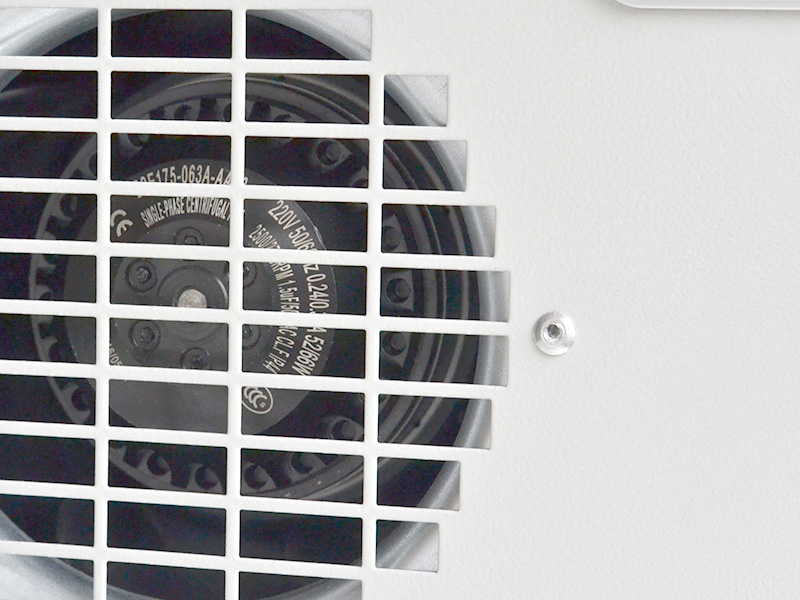 空調器內循環(huán)的風扇從上部吸入熱空氣,使空氣不斷通過蒸發(fā)器的翅片進行熱交換,并將放熱后變冷的空氣從下部排出空調器,并送向柜內。如此柜內空氣不斷循環(huán)流動,達到降低溫度的目的。同時,外部循環(huán)的風扇從下部吸入外界冷空氣,經過熱交換后熱空氣從上部排出空調器。